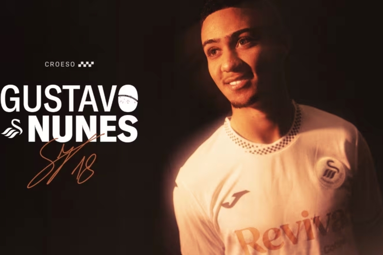 Qual é a duração do empréstimo de Gustavo Nunes? O empréstimo do jogador ao Swansea City vai até junho de 2026.